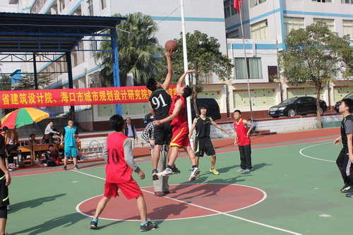 1月16日上午,我院與省建筑設(shè)計院、??谑谐鞘幸?guī)劃設(shè)計研究院在省農(nóng)墾中?;@球場進(jìn)行了籃球友誼賽。