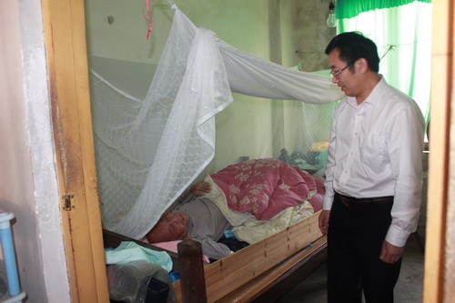 圖為我院工會(huì)主席董保?。ㄓ遥┰谖繂?wèn)困難職工